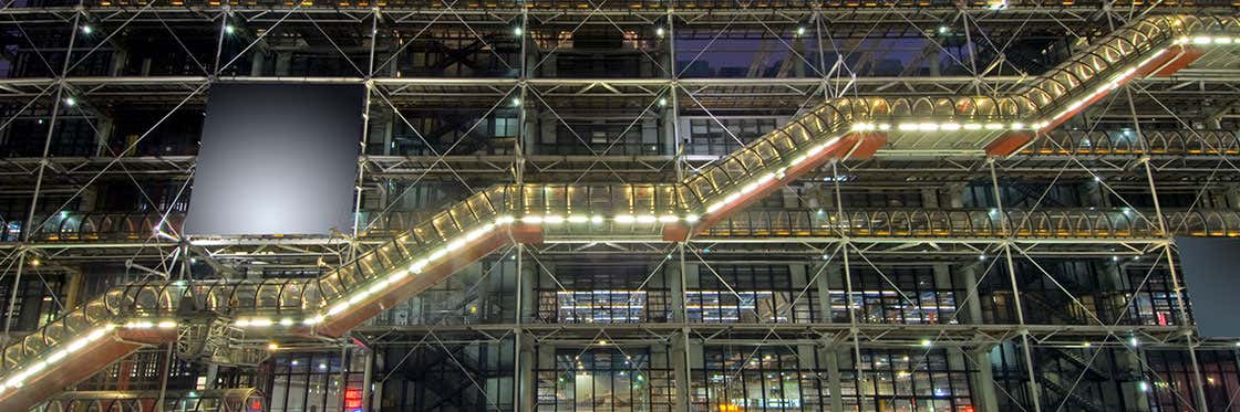 O edifício do Centro Pompidou é um dos mais extravagantes de Paris devido aos tubos de ar, canos, elevadores e escadas rolantes coloridas que estão situadas na parte exterior do edifício.